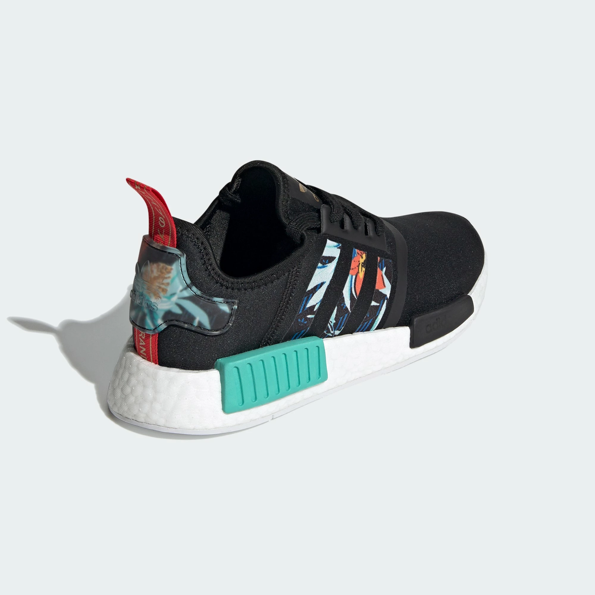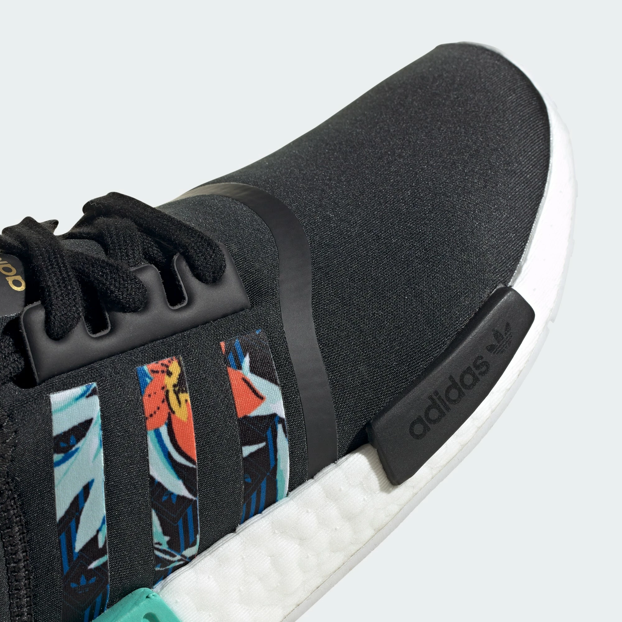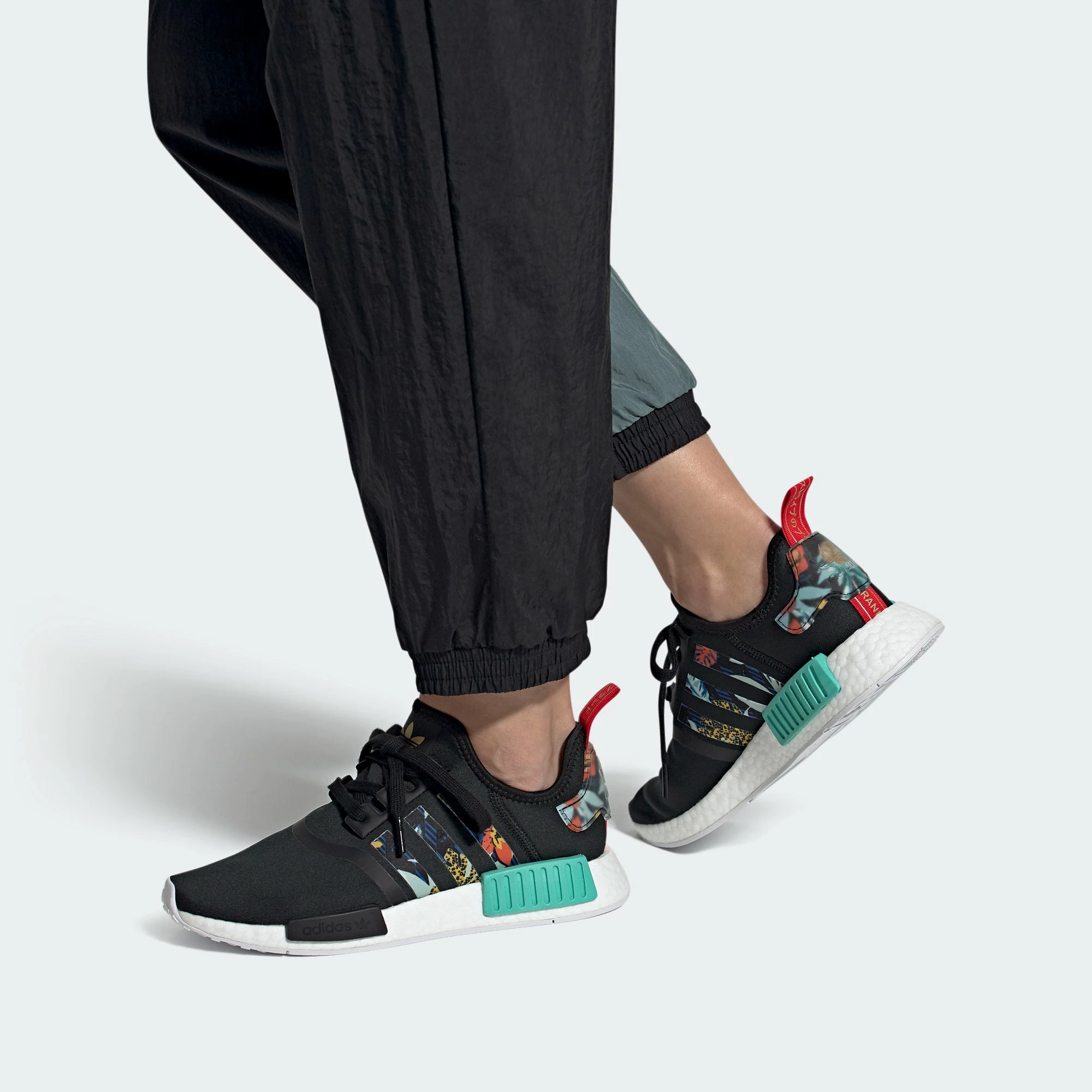 Be on the move all day long, in style with HER Studio London. The adidas NMD_R1 shoes are a combination of superior running technology with a modern design to turn heads. The NMDs are constructed with a breathable, lightweight textile upper. The shoes sit on a distinctive Boost midsole and rubber outsoles to keep you going all day long. The adidas kicks come in sleek black with HER Studio London prints. With black as the backdrop, floral prints and fierce pops of color hit the heel pull and plugs. Lace ’em up and get ready for a comfy stylin’ day.