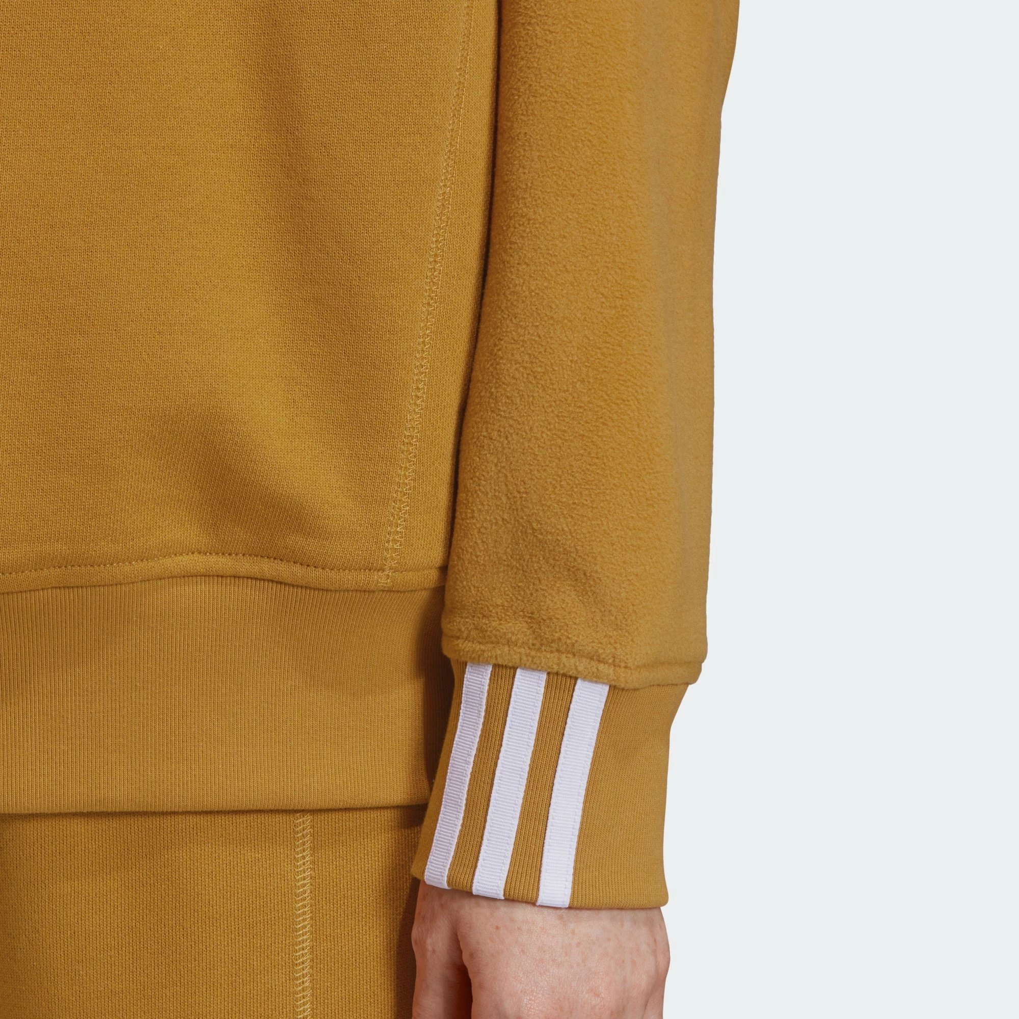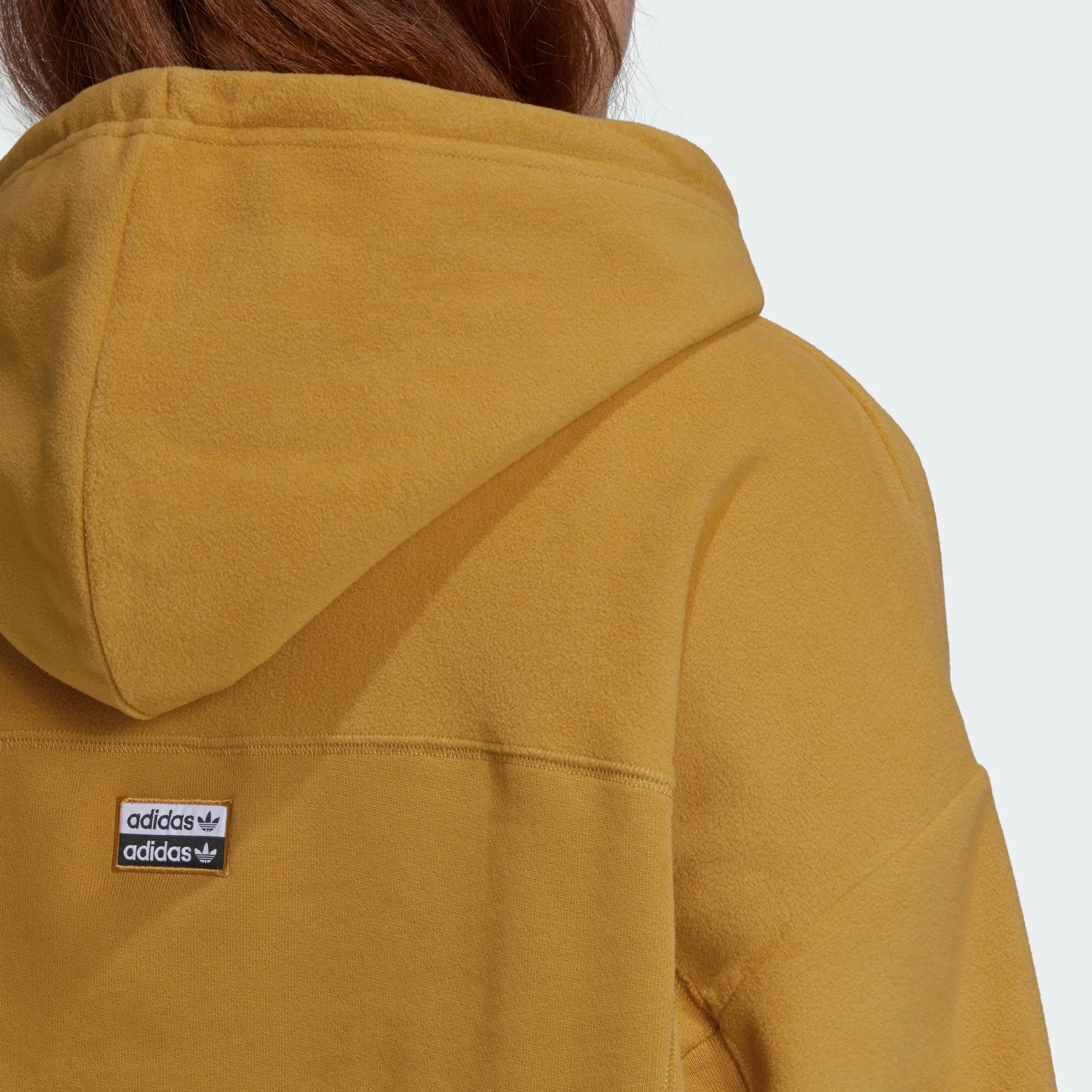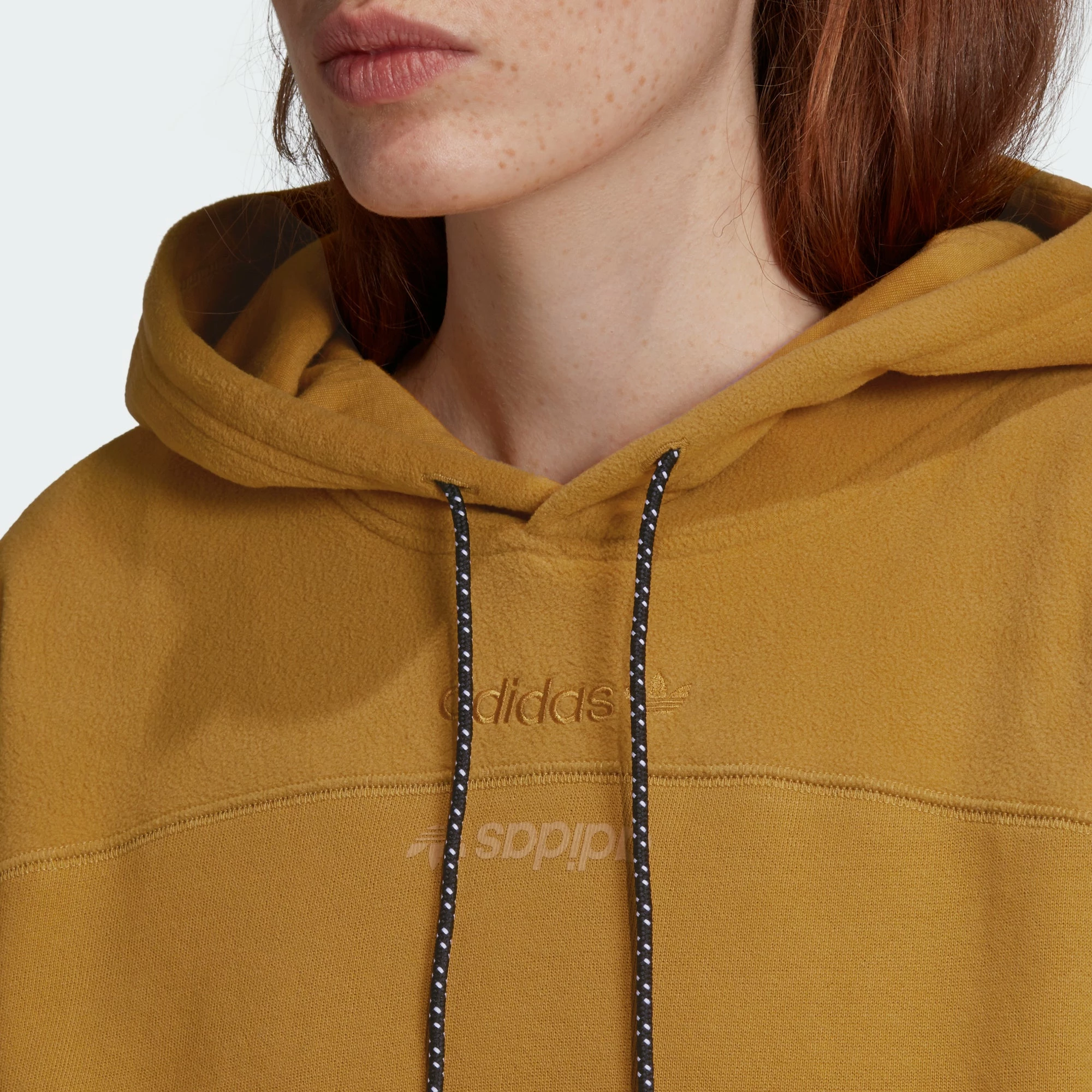 Reveal Your Voice. Wear it when and how you want to wear it. The adidas hoodie is constructed of mixed fabrics to keep you cozy on those super early mornings or late night sessions. The sweatshirt fits loosely with a double linear adidas logo across the chest. Comes in Legacy Gold with contrasting white adidas 3-Stripes on the cuffs.