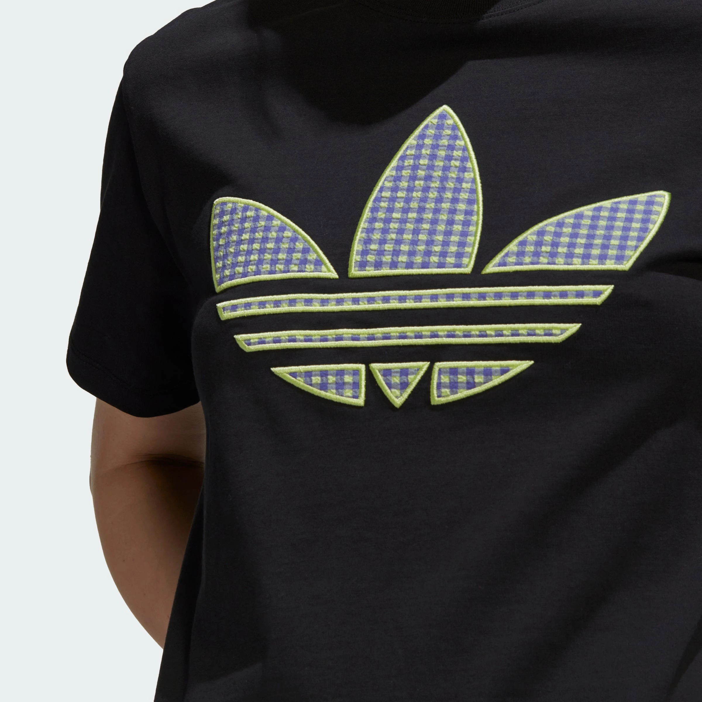 Spy the gingham print on the iconic adidas Trefoil. The adidas Tee with Trefoil Application features a checkered pattern infill on the Trefoil for a fun vibe. The casual look with super-soft cotton will keep you comfy all day long.