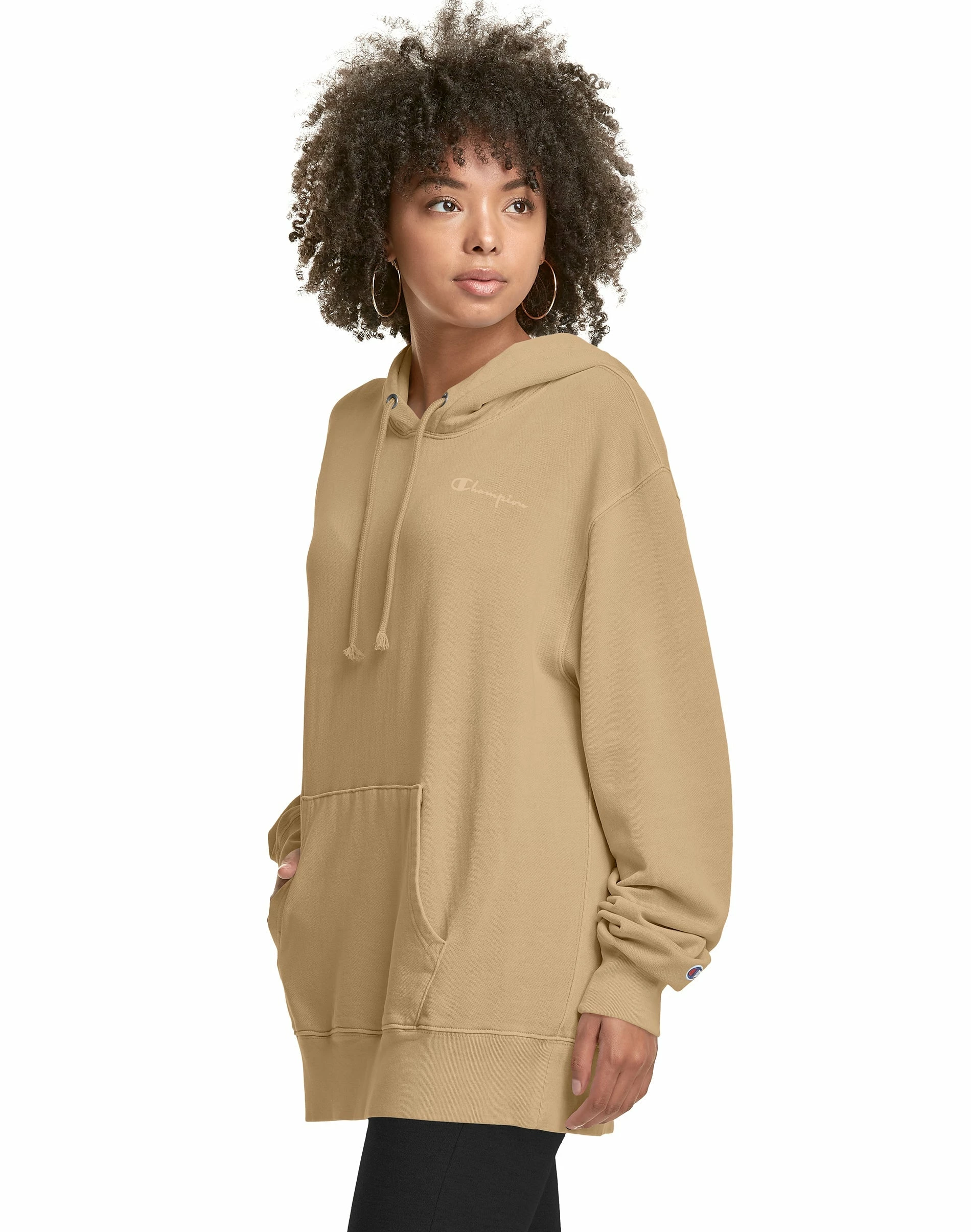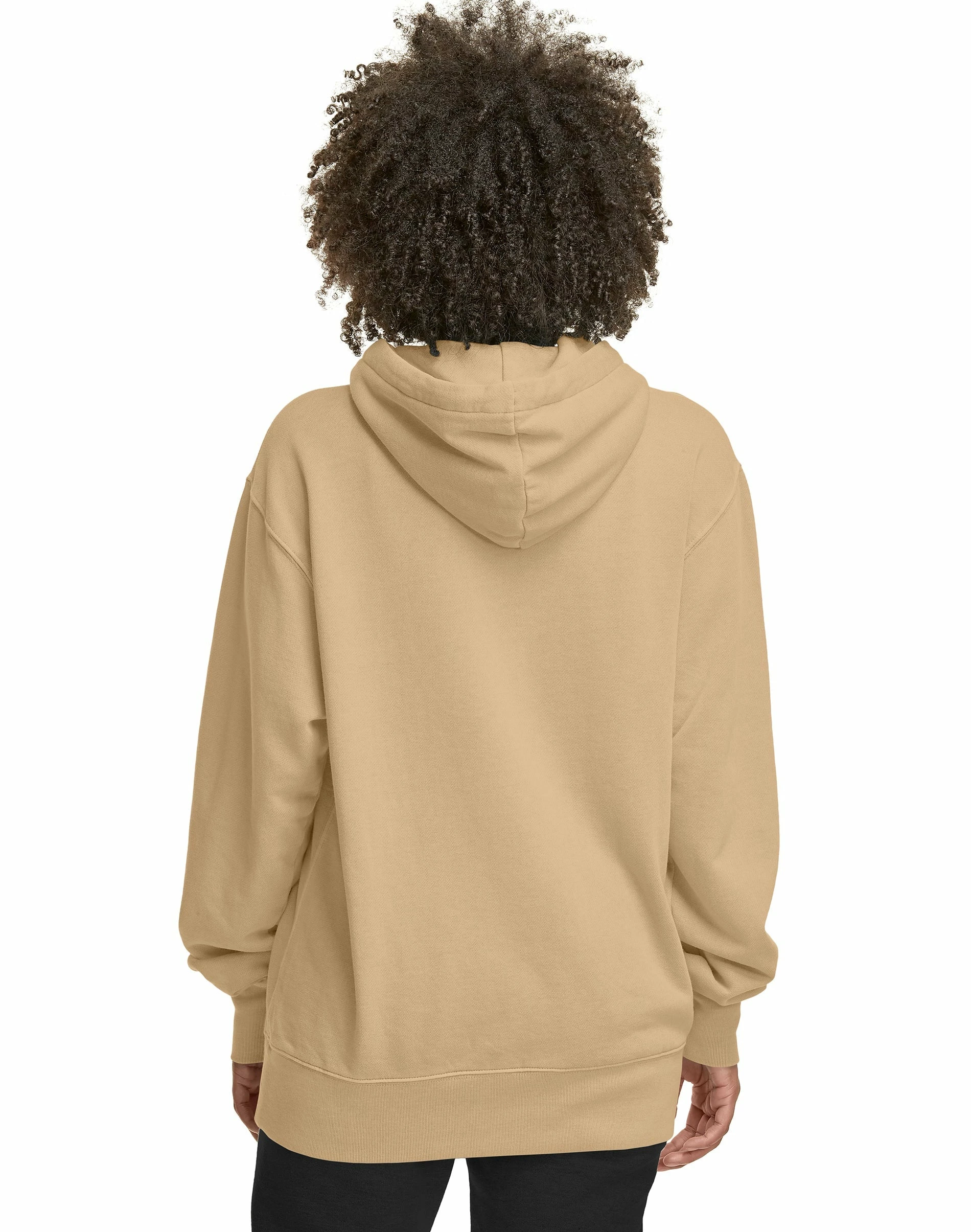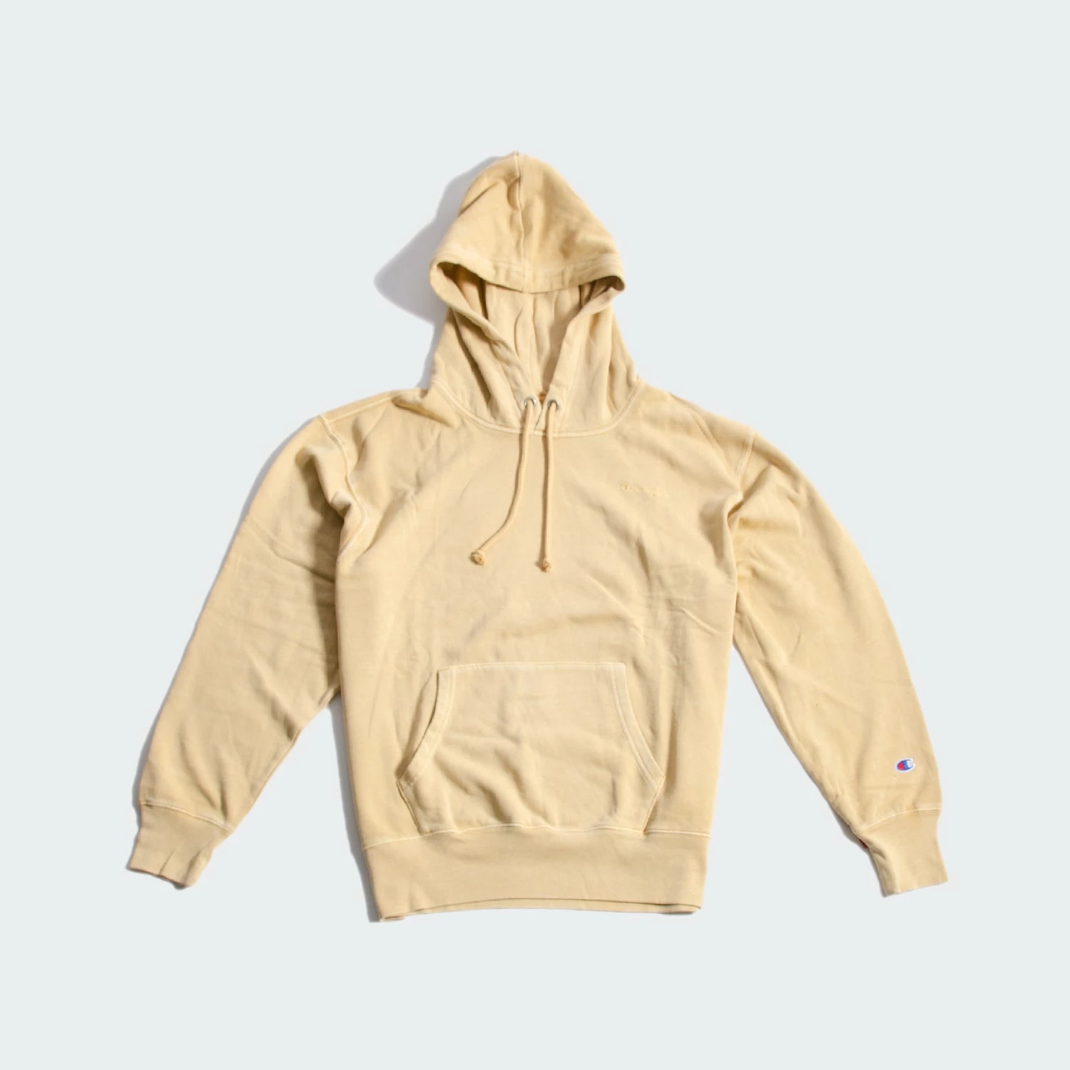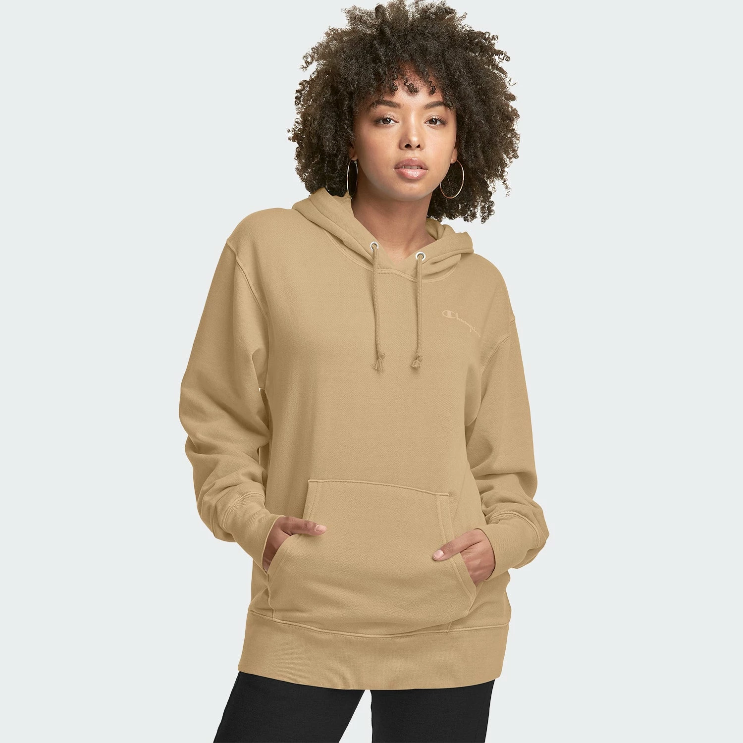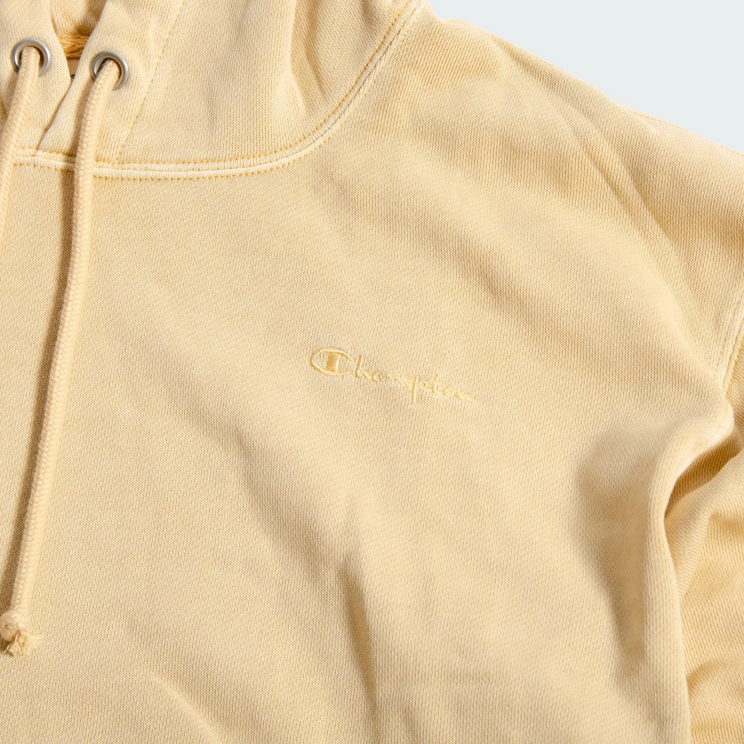 Kick back, relax and throw on a lighter weight Champion hoodie for the perfect, casual look. With an oversized, looser fit, layer underneath with your favorite pair of jeans, leggings or shorts. The hooded sweatshirt features the Champion logo on the chest in a tonal palette. Comes in a Gold Buttercup hue.