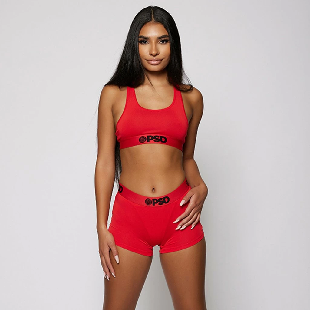 A must-have for your undergarments drawer. Add to your collection of undergarments with colorful PSD sports bras. The sports bras are made of 4-way stretch mesh fabric that’s ultralight, super soft and super comfy. You’ll stay cool and fresh all day long. The soft and flexible microfiber waistband is made with moisture-wicking properties and contours your waistline. Whether you live a physically active lifestyle, or are just chill and like to lounge, do it in style from the inside out. Comes in red all around with the PSD logo in contrasting black.