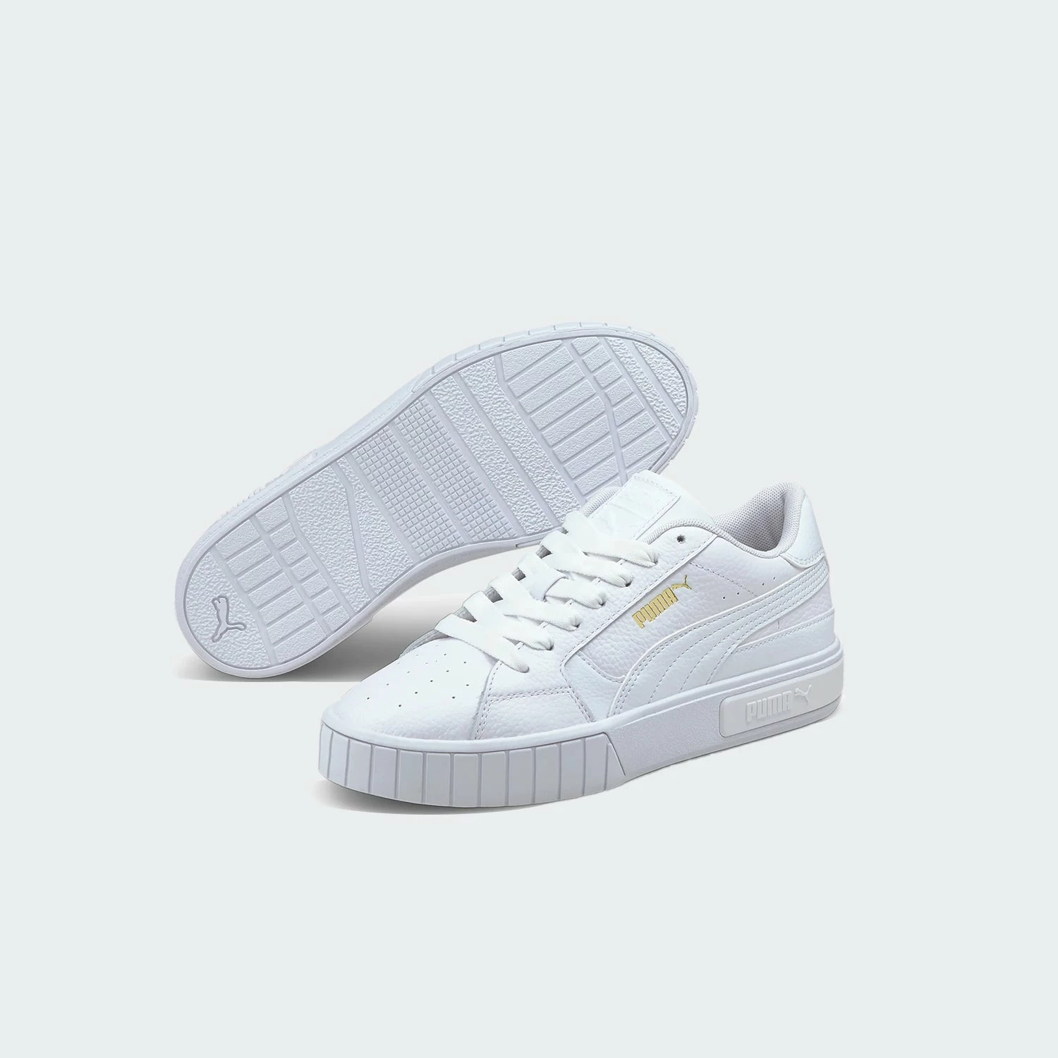 Pure and simple. The PUMA Cali Star sneakers are built sleek with streetwise design. Constructed of leather uppers with full lace closure, the sockliner is plush for all day comfort. PUMA details decorate the shoe in metallic style. Comes in fresh white all around.