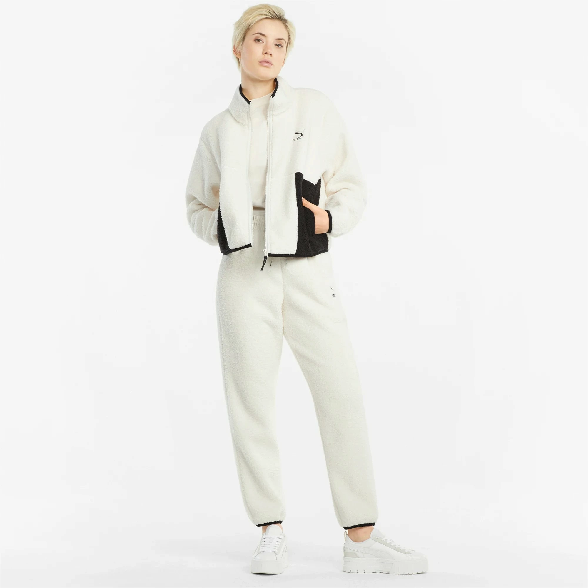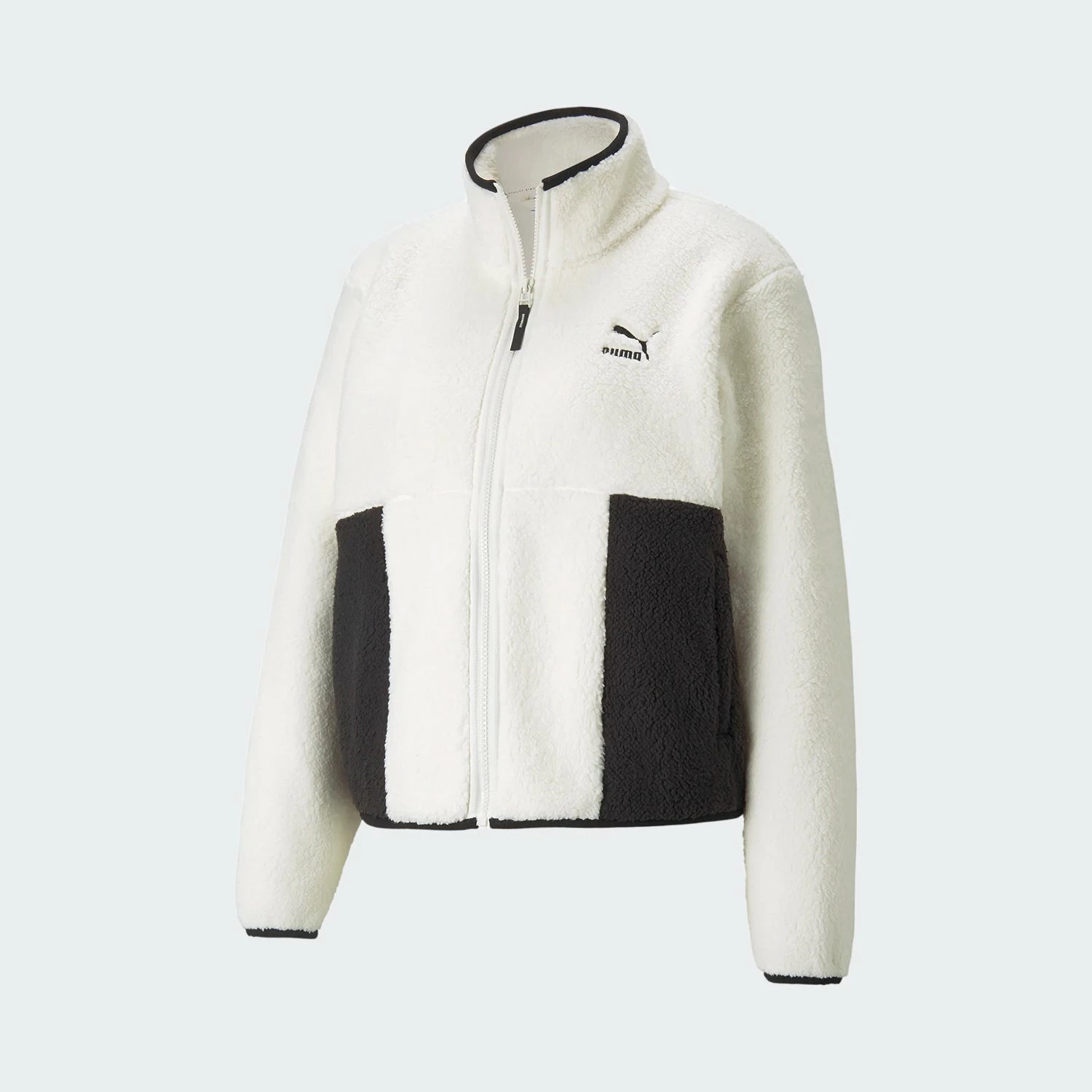 Layer up in Sherpa warmth with the PUMA CLSX Sherpa Track Jacket. The PUMA jacket comes in soft construction with a full zipper and hard-warmer side pockets to keep you toasty. Comes in Ivory Glow with contrasting black.
